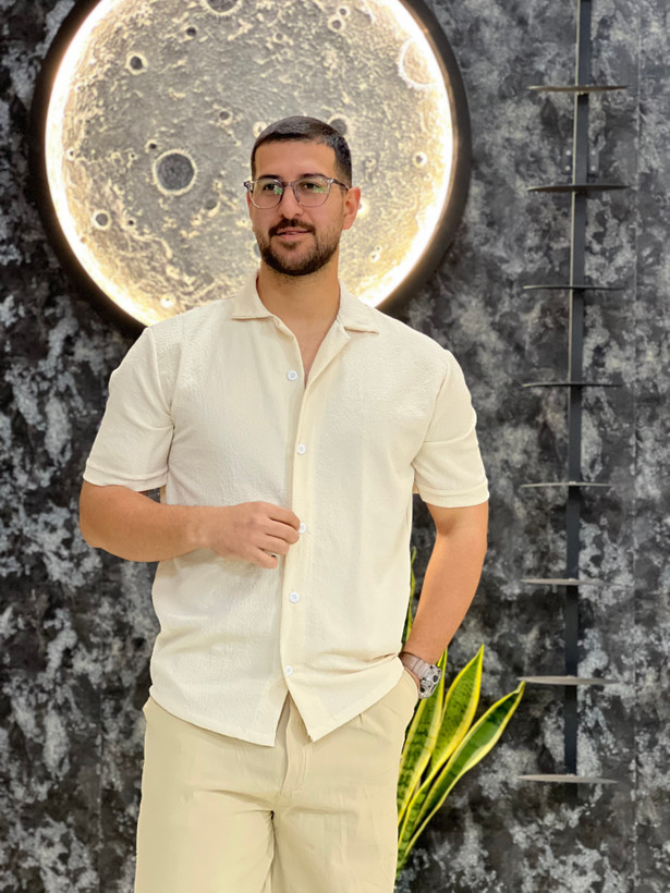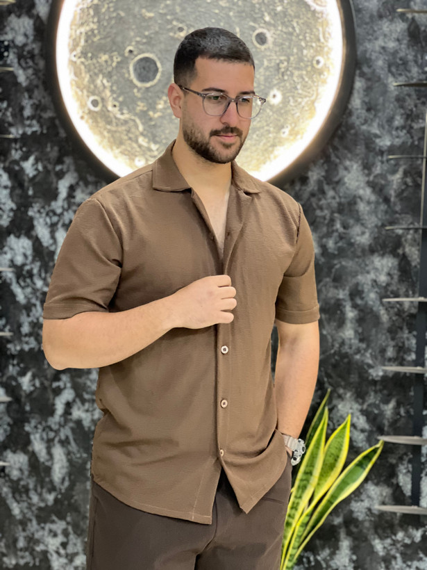 پیراهن آستین کوتاه مردانه مدل یقه انگلیسی