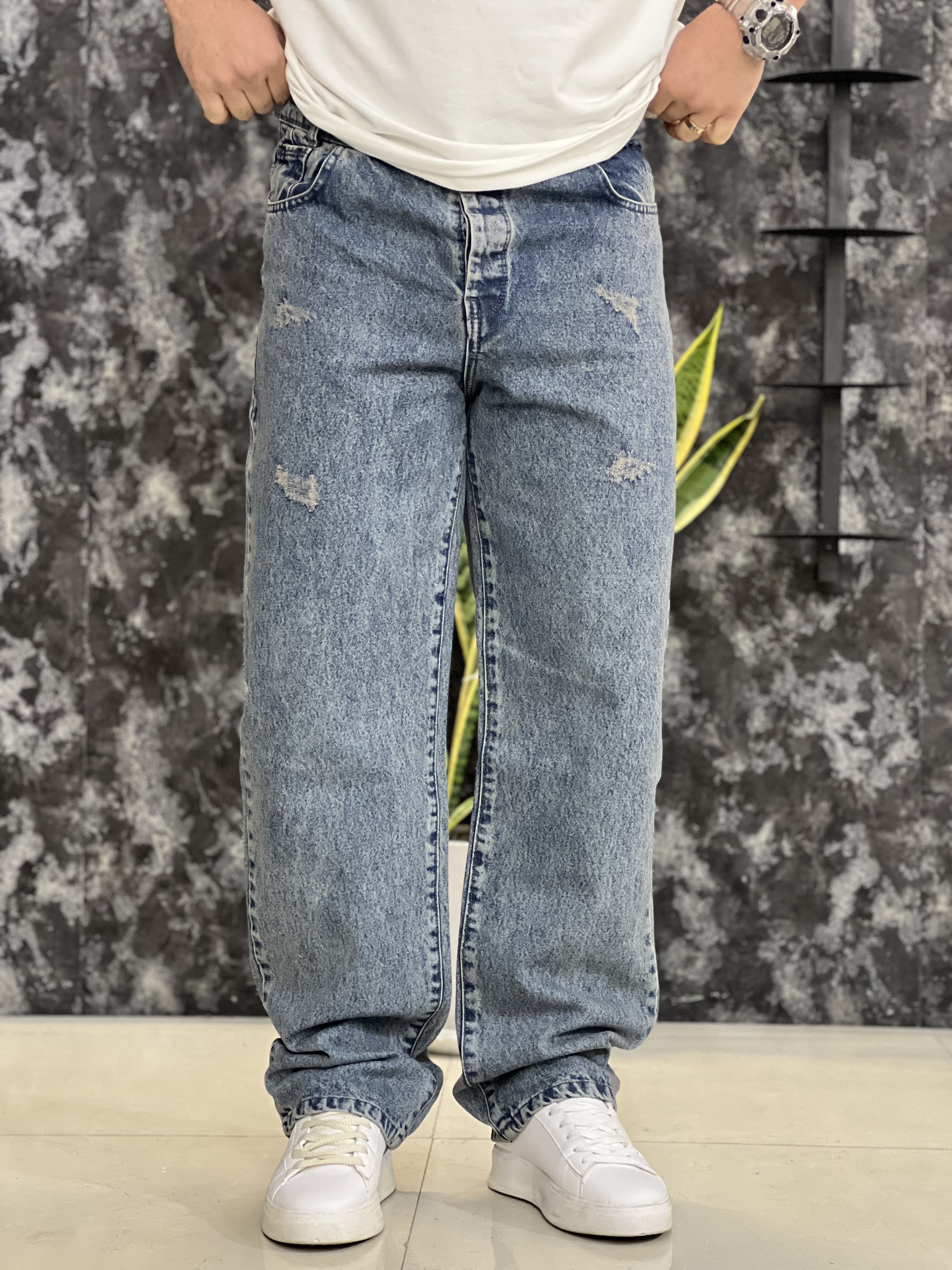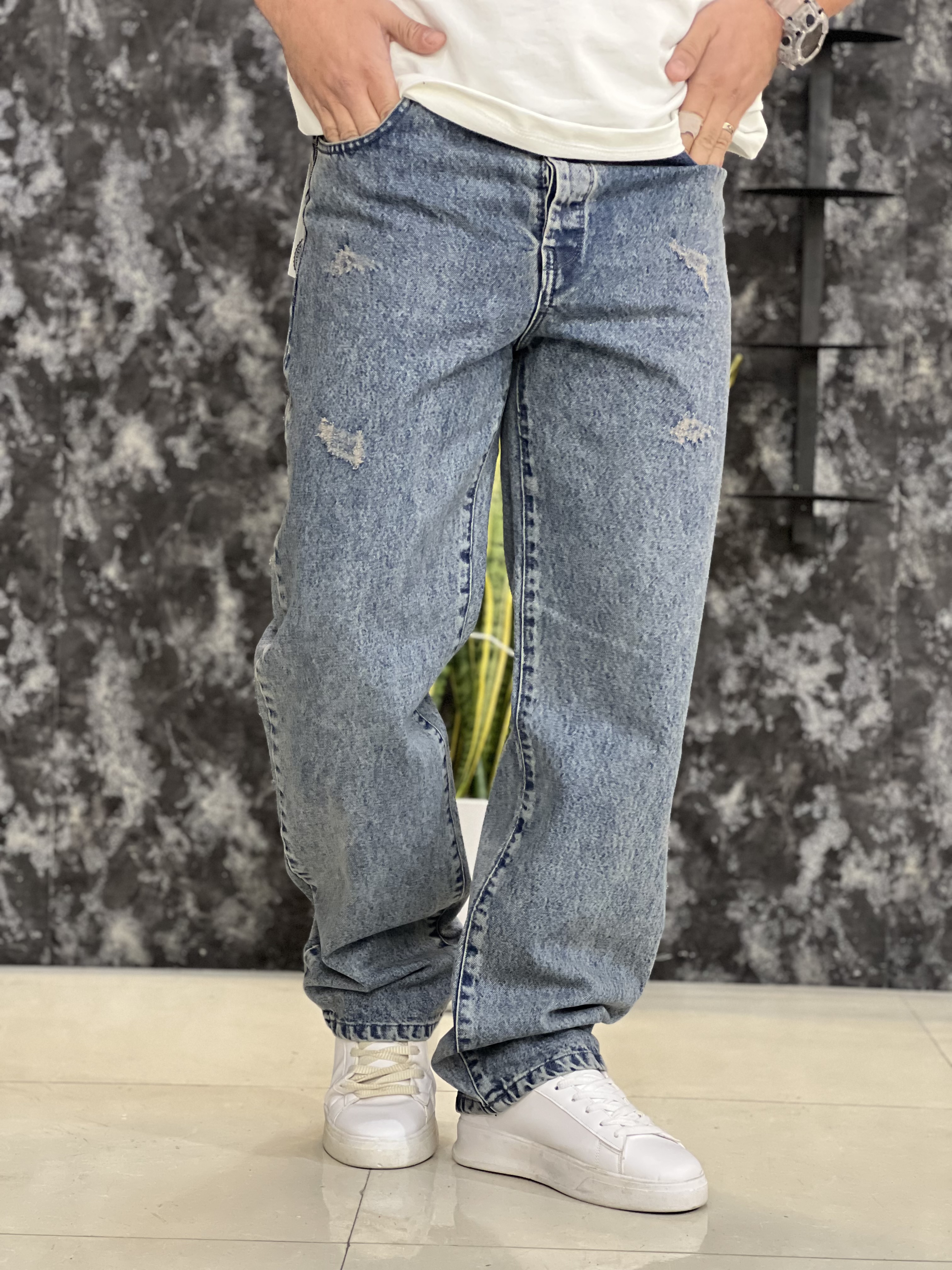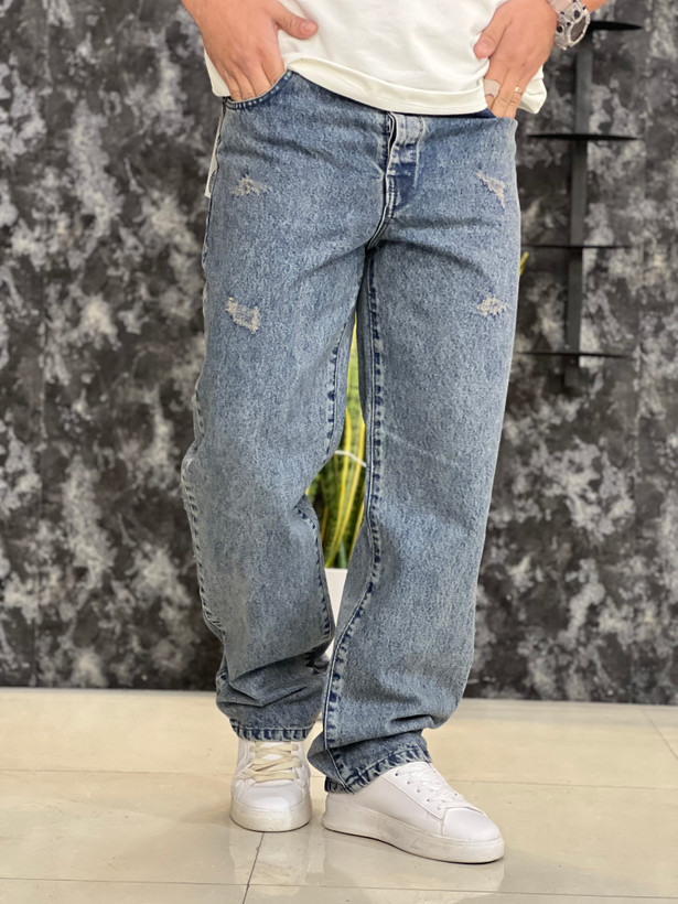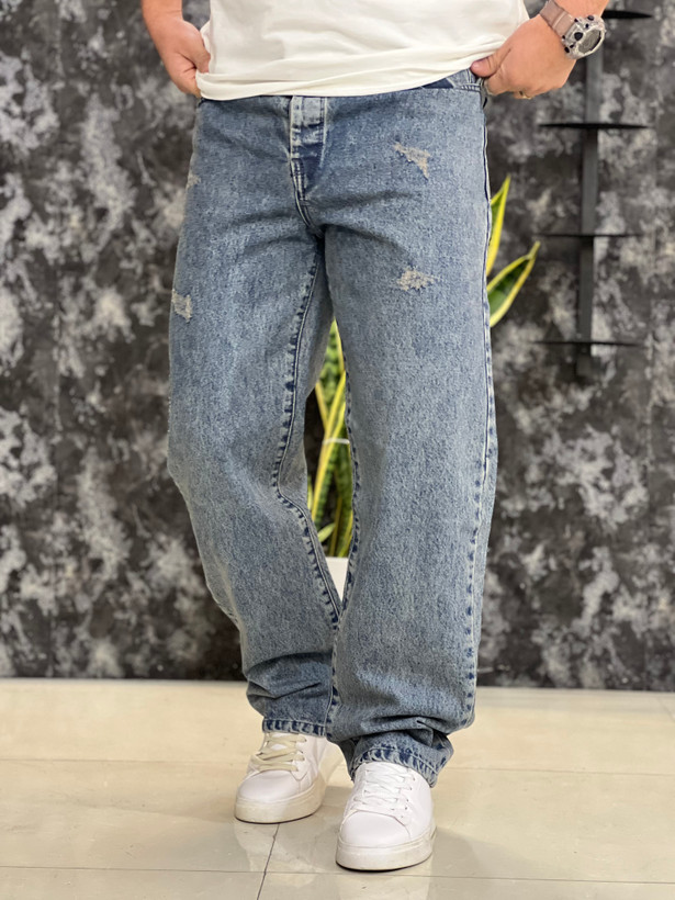 شلوار مردانه مدل بگ فیت جین پارچه پنبه ترک