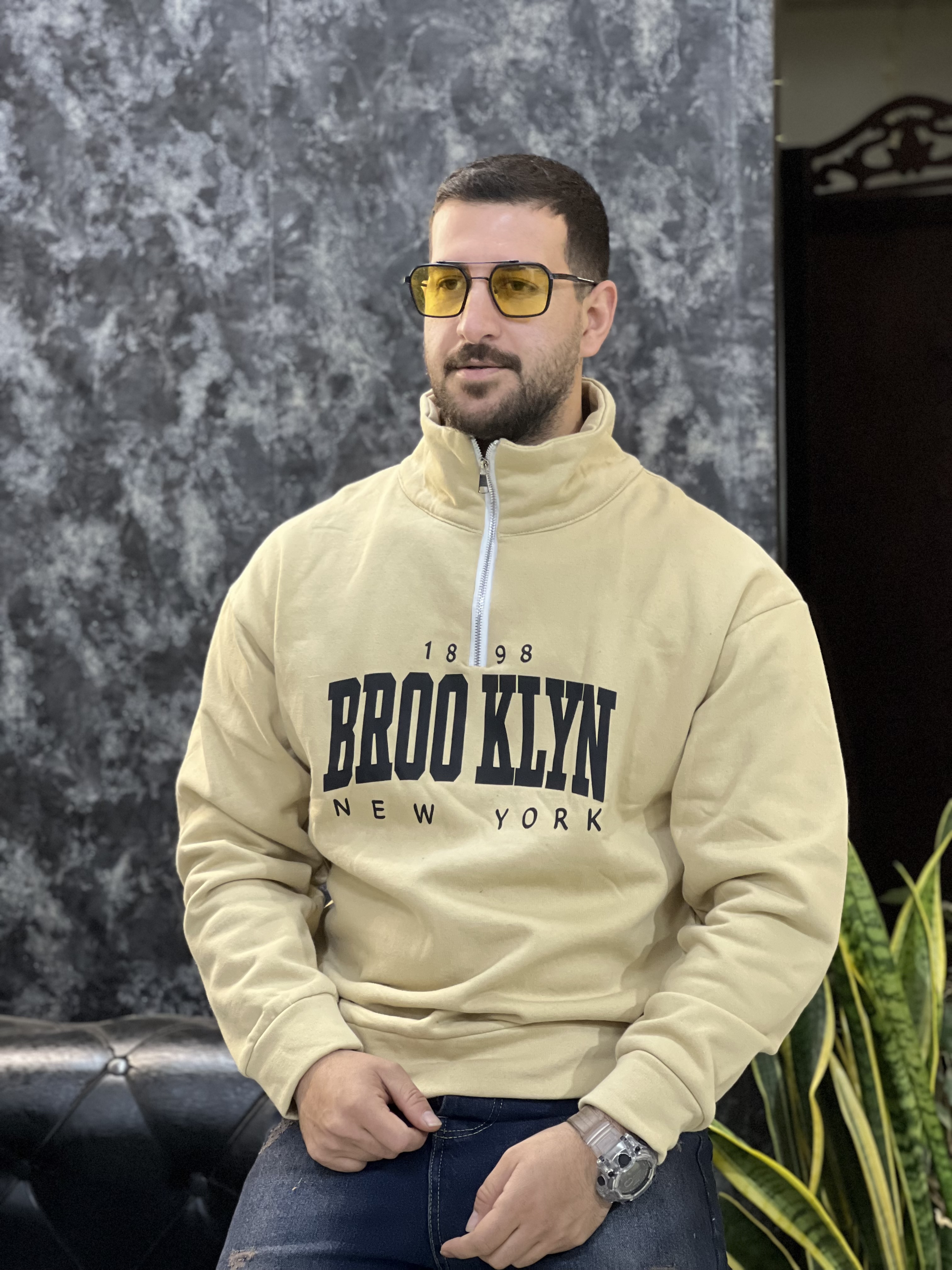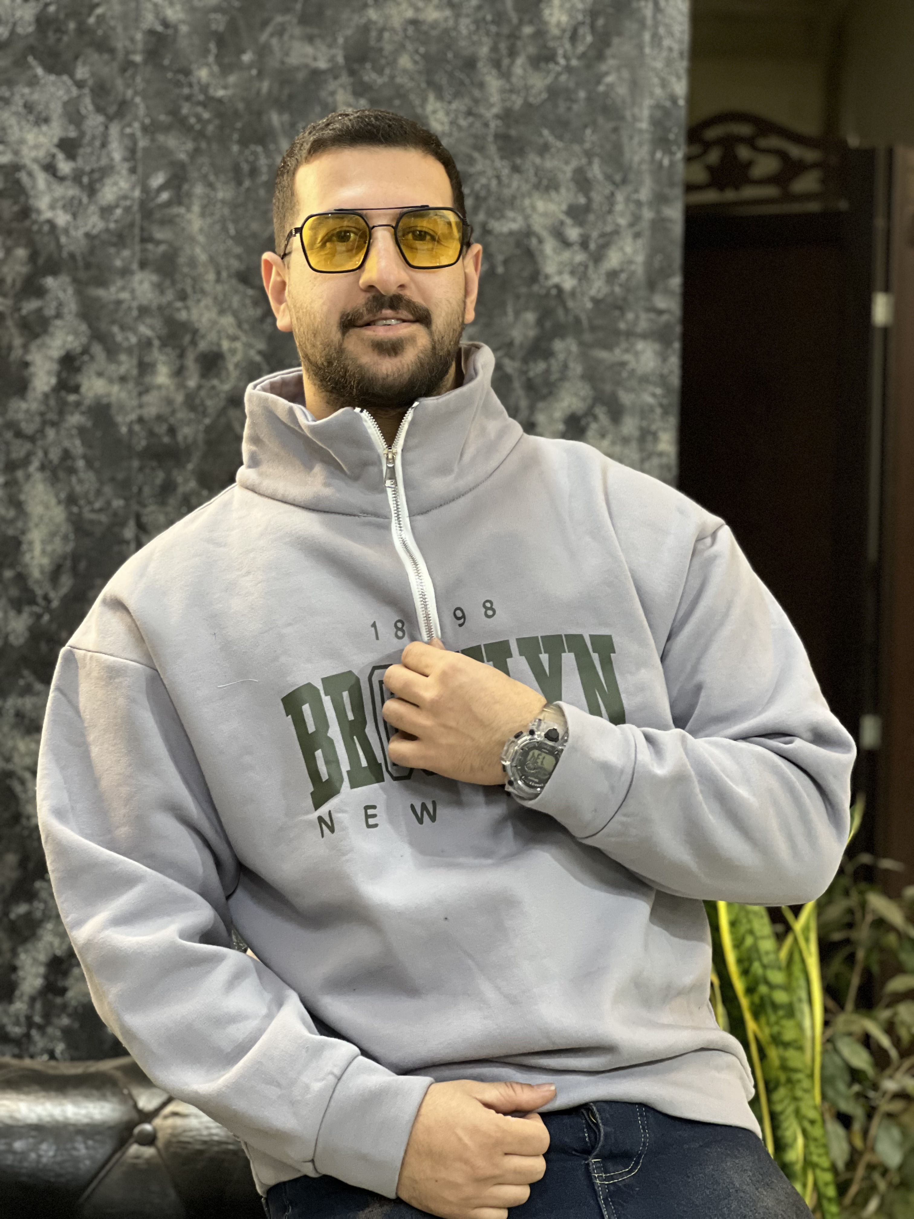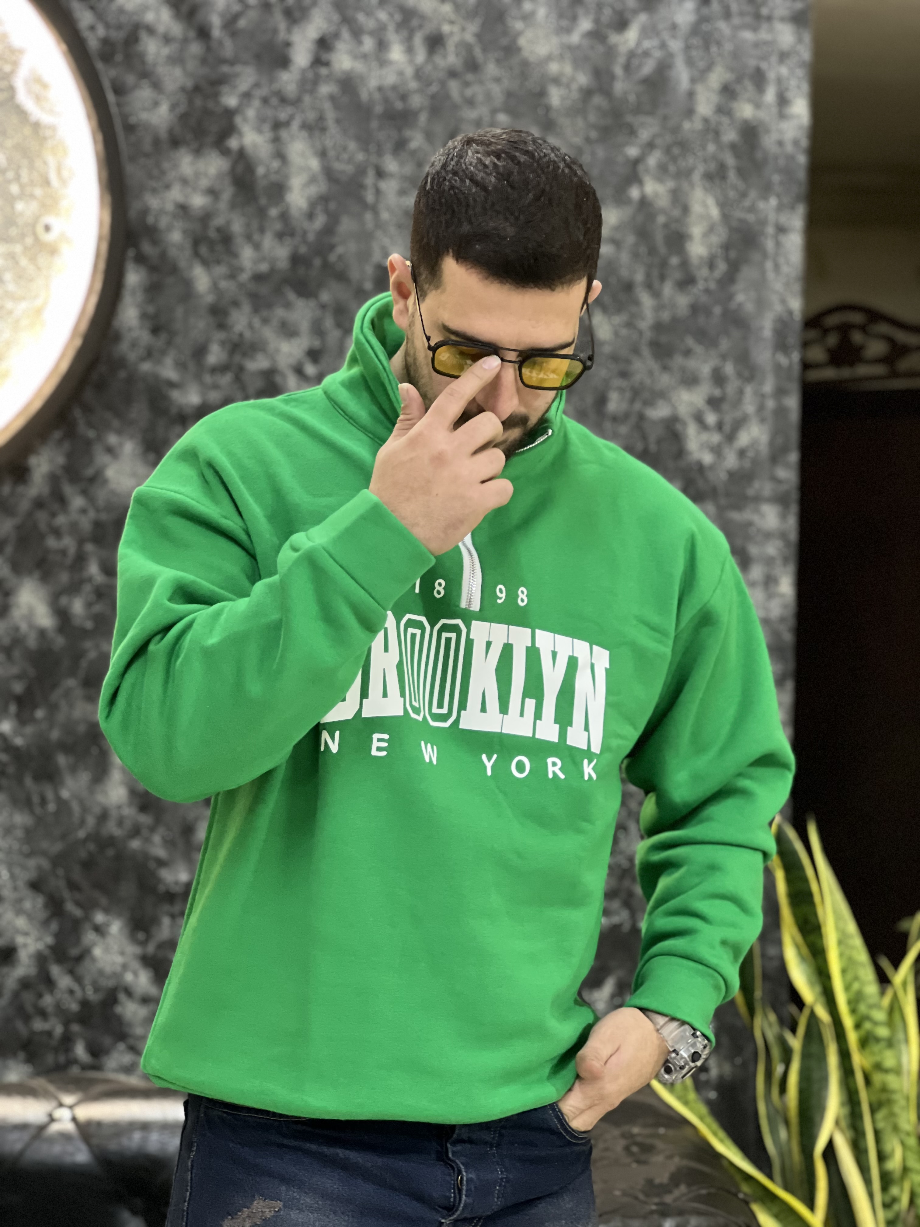 سویشرت مردانه مدل دورس نیم زیپ پارچه پنبه