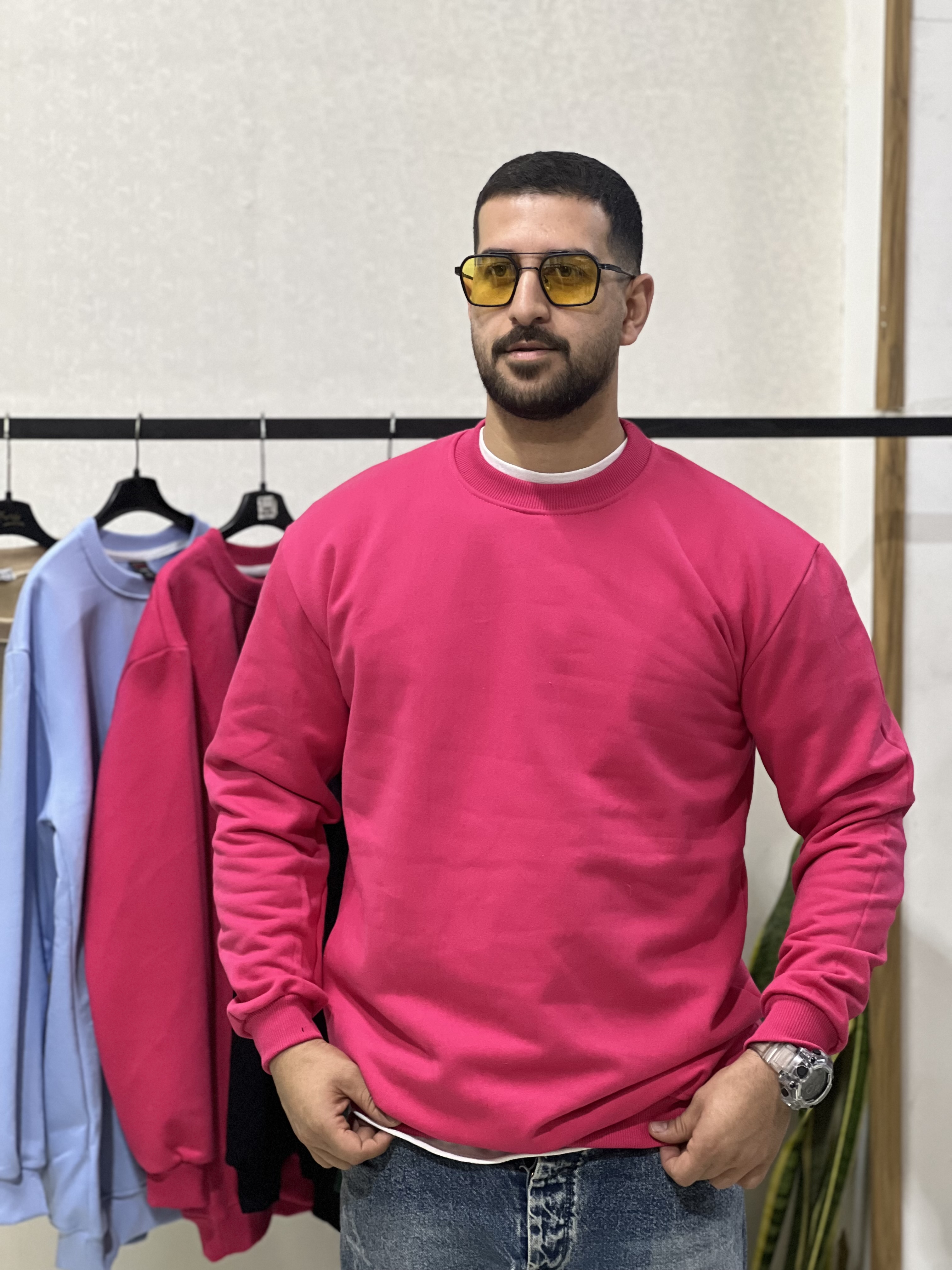 سویشرت مردانه مدل دورس بیسیک پنبه یقه گرد رنگ صورتی
