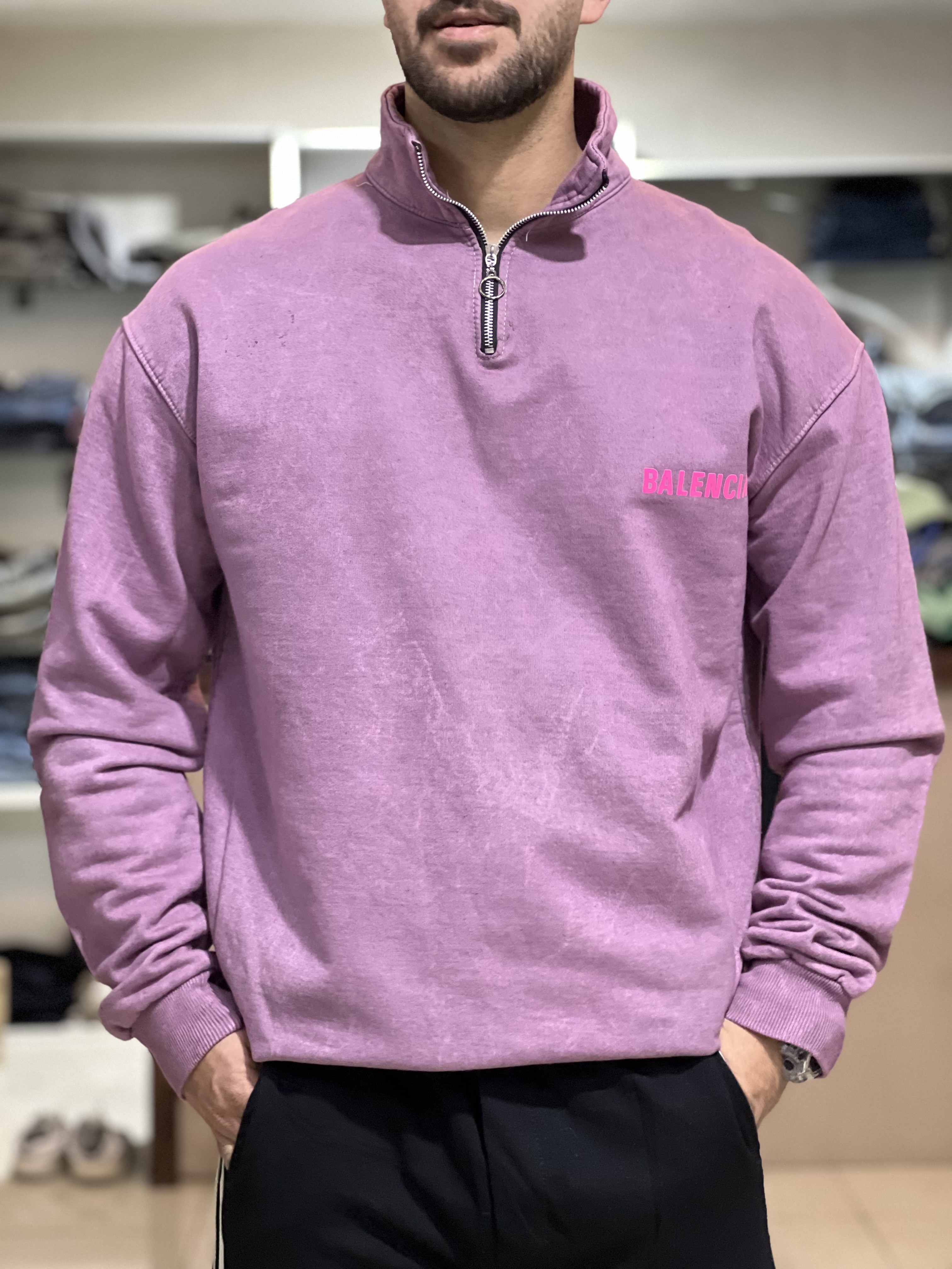 سویشرت مردانه مدل دورس نیم زیپ سنگشور بالنسیاگا سه نخ پنبه